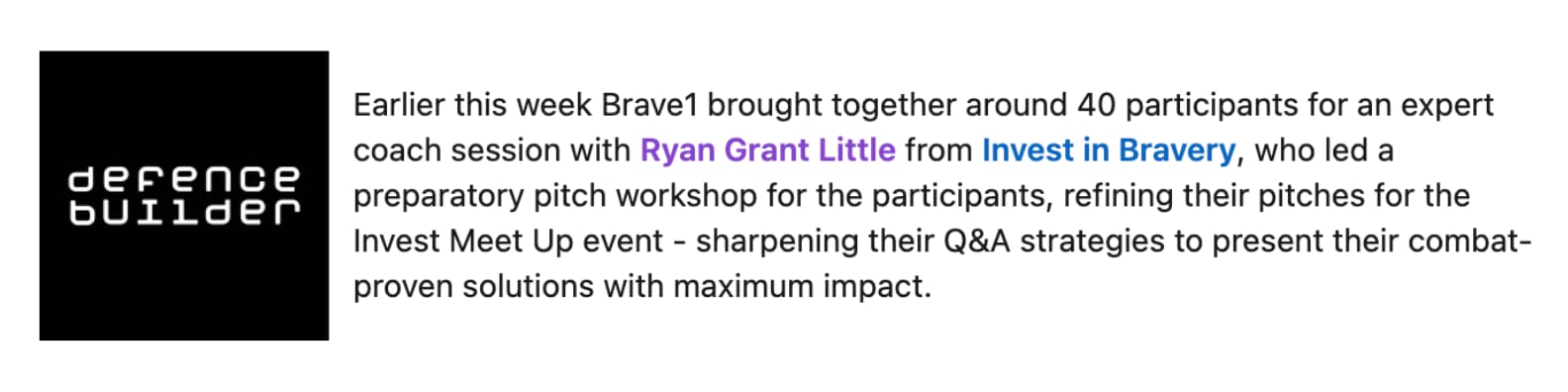 One of the many hats I wear is as a professional pitch coach for impact and climate startups. For all of last week I made that skill available pro bono to Ukraine’s defensetech startups. I led a group session for 40 people and a series of in-depth 1:1 sessions for eight founders. It was exhausting and exhilarating and something I’ll do much more of in the year ahead.