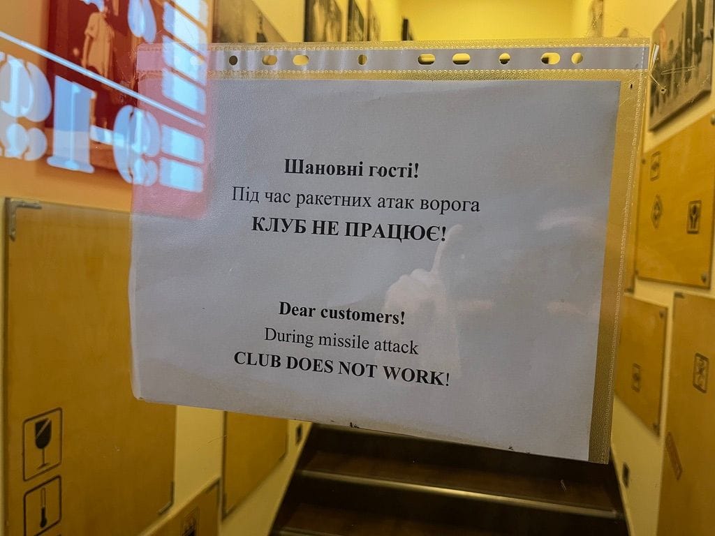 Sign on the door of my gym. I’ve done yoga classes during air alerts and Shahed attacks, but they draw the line at missile attacks.