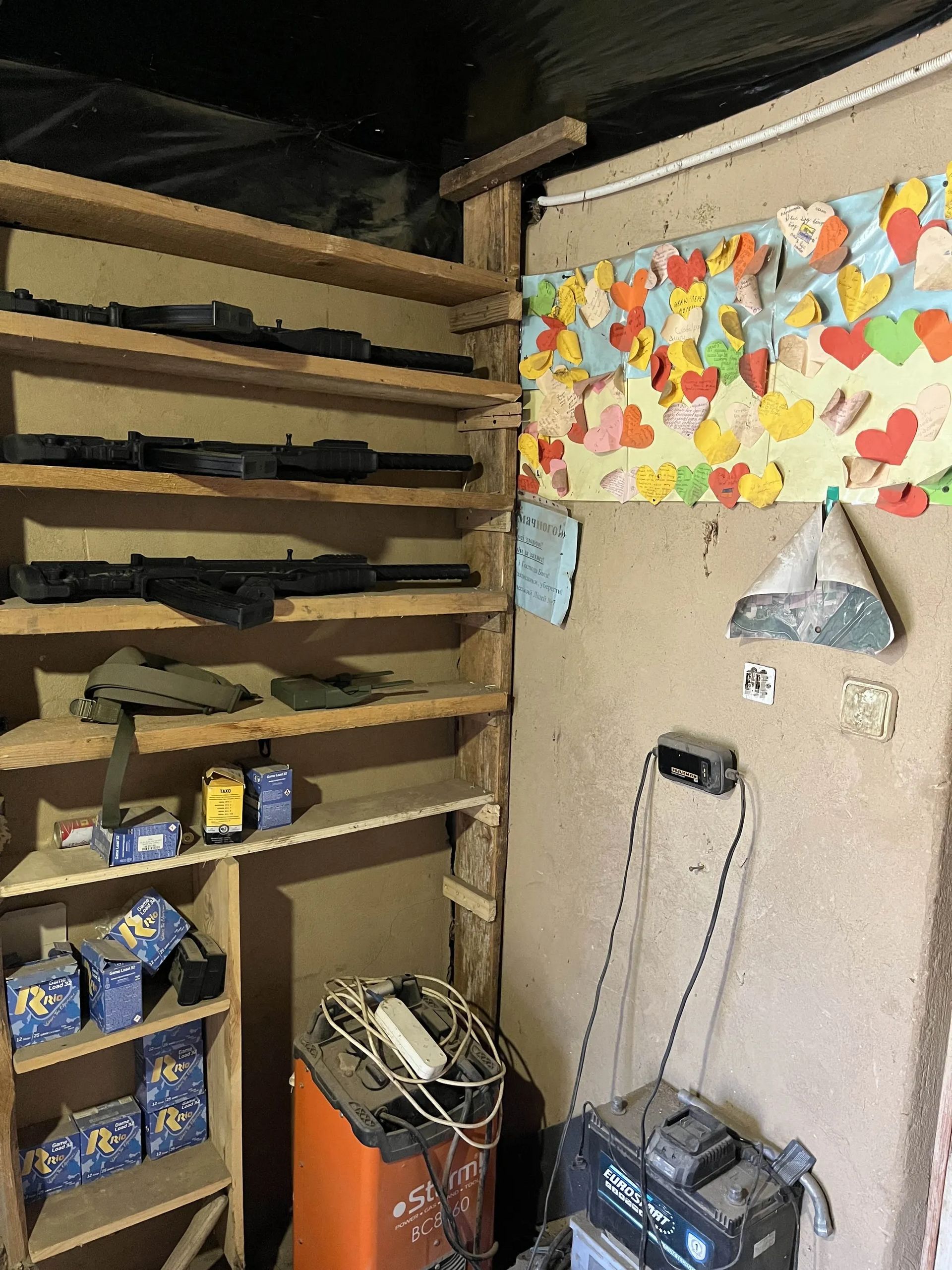 Artillery unit’s home, with thank you notes from Ukrainian school kids on the walls of each room.